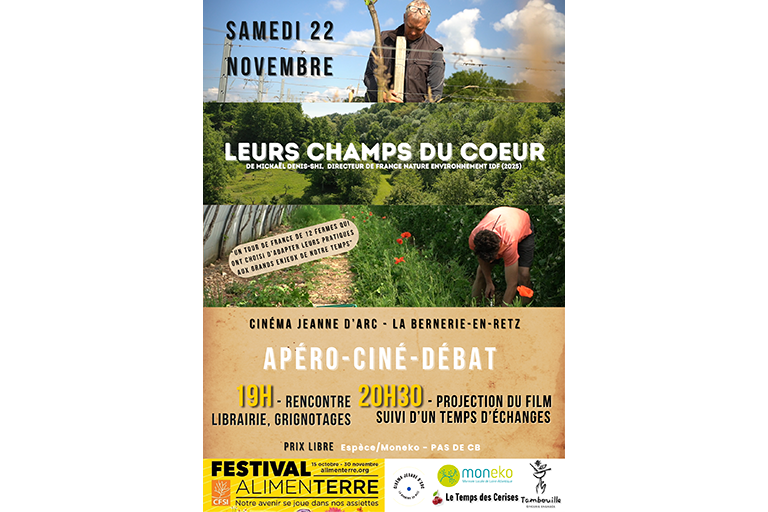 Projection du documentaire LEURS CHAMPS DU COEUR. Comment assurer une production alimentaire de qualité, rémunératrice pour celleux qui la produisent et accessible au plus grand nombre ? Une série de témoignages puissants d'une dizaine de fermes françaises engagées.