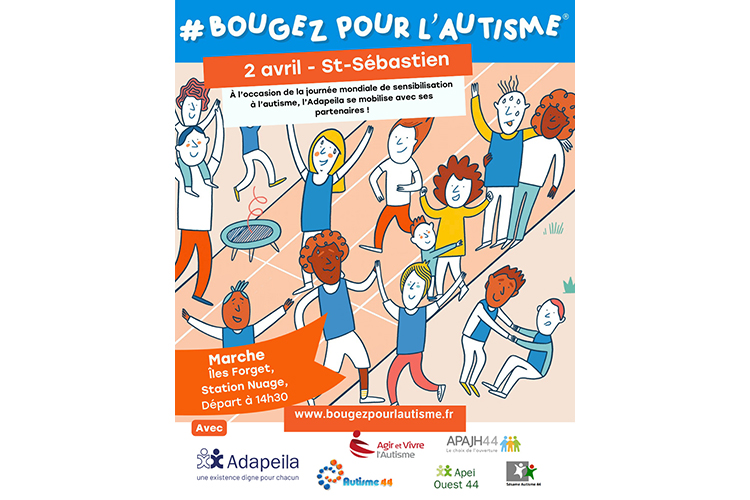À l’occasion de la Journée mondiale de sensibilisation à l’autisme, célébrée chaque année le 2 avril, l’Adapeila organise une marche solidaire à Saint-Sébastien-sur-Loire, près de Nantes, en partenariat avec Agir et Vivre l’Autisme, Autisme 44, Apei Ouest 44, l’APAJH 44 et Sésame Autisme.