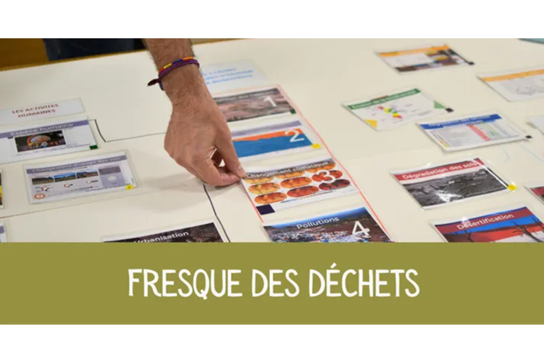 La Fresque permet aussi de prendre conscience de notre consommation de ressources au quotidien à travers le prisme des déchets tout en sensibilisant sur les bonnes pratiques de tri et de prévention.